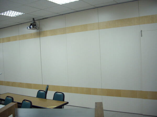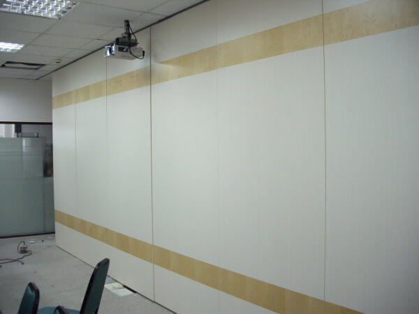 萬向軌道用於臨時會議室,基於裝潢需求,平常辦公室需要寬敞空間,如果有需要開會或講習時,可將萬象軌道拉成一面活動隔間牆。